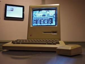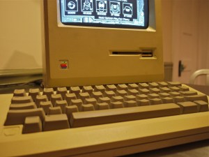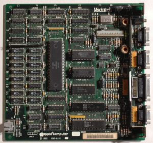 The Macintosh 128K, originally released as the Apple Macintosh, is the original Apple Macintosh personal computer. Its beige case consisted of a 9 in (23 cm) CRT monitor and came with a keyboard and mouse. A handle built into the top of the case made it easier for the computer to be lifted and carried. It had an initial selling price of $2,495