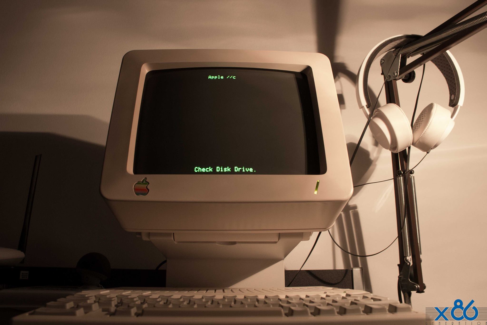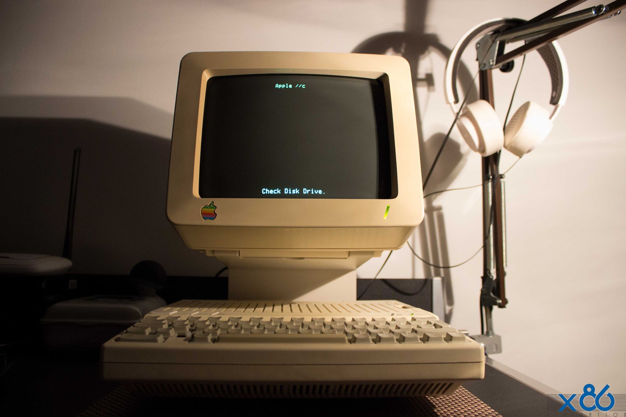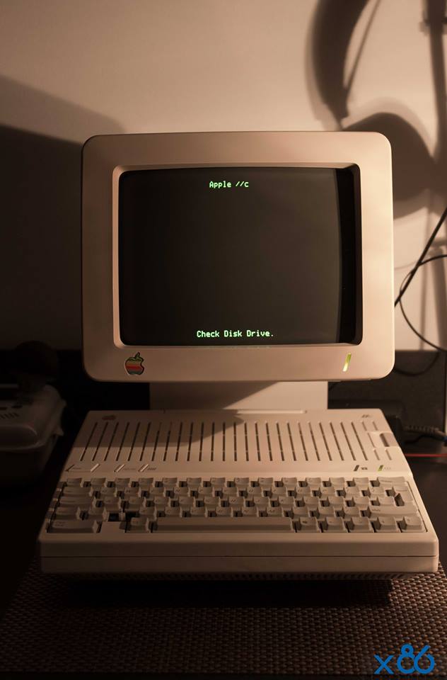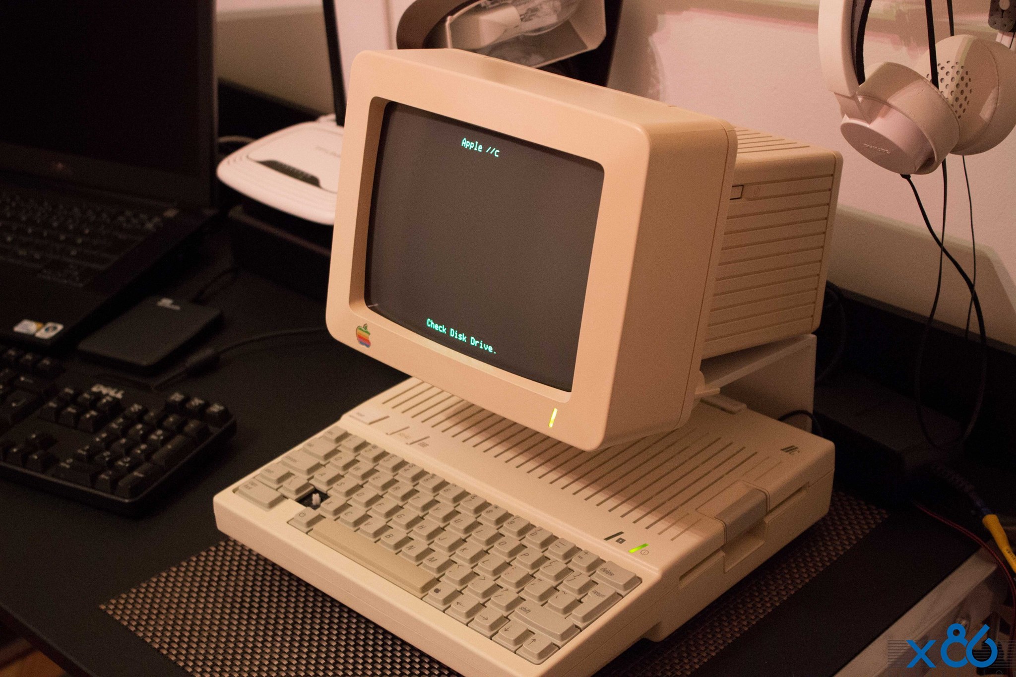 The Apple IIc, the fourth model in the Apple II series of personal computers, is Apple Computer’s first endeavor to produce a portable computer. The result was a 7.5 lb (3.4 kg) notebook-sized version of the Apple II that could be transported from place to place. The c in the name stood for compact, referring to the fact it was essentially a complete Apple II computer setup (minus display and power supply) squeezed into a small notebook-sized housing. While sporting a built-in floppy drive and new rear peripheral expansion ports integrated onto the main logic board, it lacks the internal expansion slots and direct motherboard access of earlier Apple IIs, making it a closed system like the Macintosh.