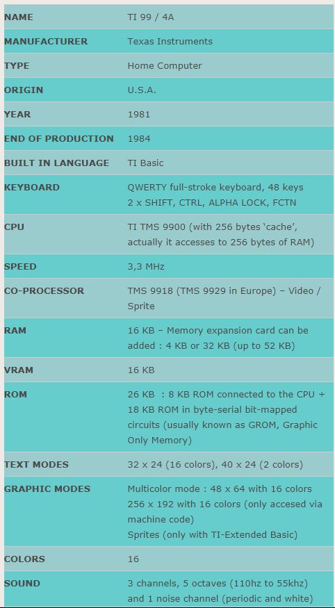As you can see in the pic, I have both 99/4A models: the original black/aluminum model and the plastic beige one. I prefer the original one not only because it looks better but because the keyboard feels tighter. This is a pretty easy to find computer (eBay has loads of it) but finding ones in very good condition might be a bit of a challenge.